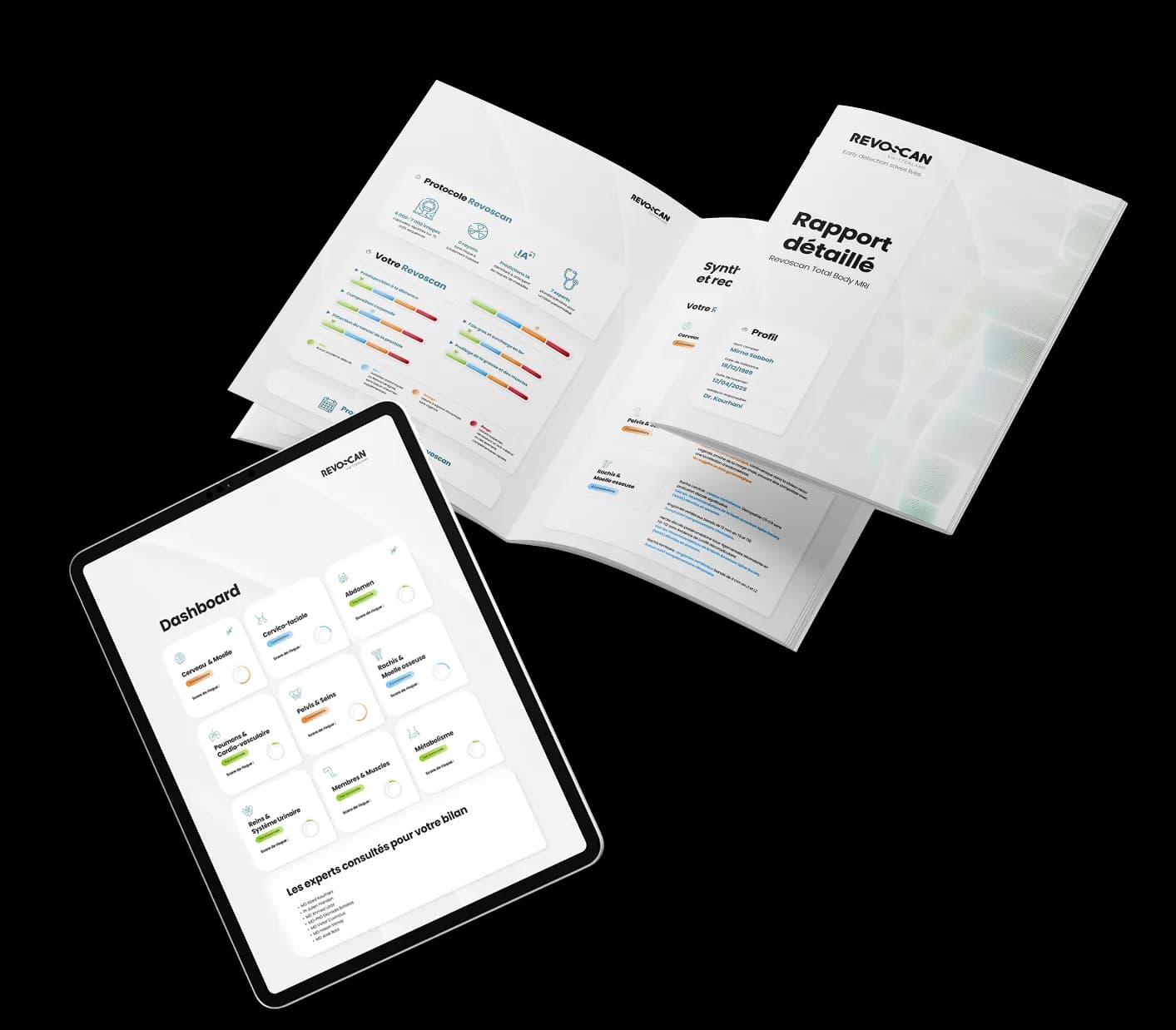 Receive a personalised report enriched with intuitive visualisations and an exclusive Revoscan analysis, a clear synthesis of what your body reveals, helping you decide, anticipate, and take action.